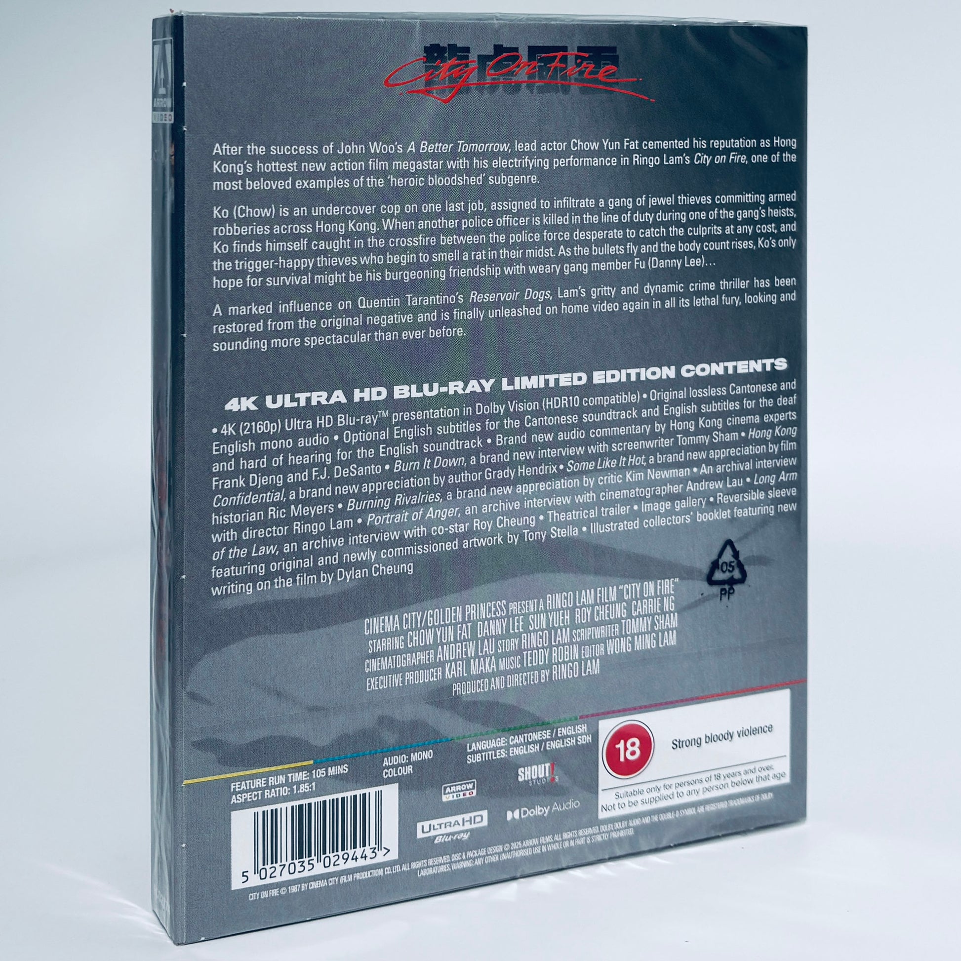 Introducing Arrow Films' 4K Ultra HD for 1987's City on Fire. After the success of John Woo's A Better Tomorrow, lead actor Chow Yun Fat cemented his reputation as Hong Kong's hottest new action film megastar with his electrifying performance in Ringo Lam's City on Fire, one of the most beloved examples of the 'heroic bloodshed' subgenre.