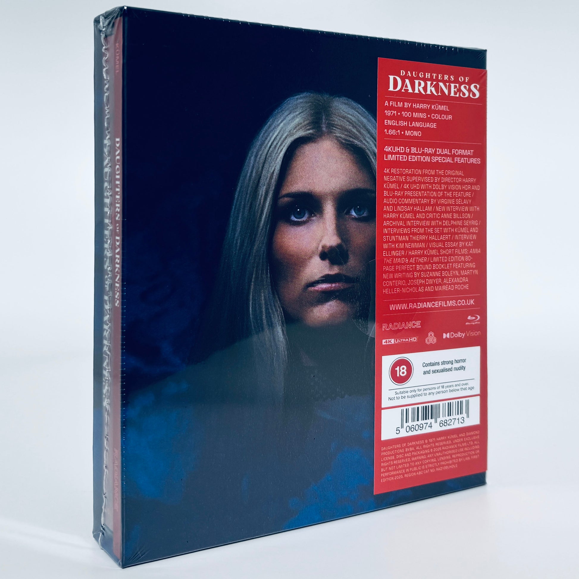 Introducing Radiance Film's Limited Edition 4K Ultra HD + Blu-ray (Region B) for 1971's Daughters of Darkness. This Euro-horror classic is an opulent fever dream, weaving a Sapphic subtext and feminist undercurrent beneath its baroque surface. Thematically rich. Harry Kümel’s vampire tale transcends convention and is presented in a stunning 4K restoration for the first time in the UK.