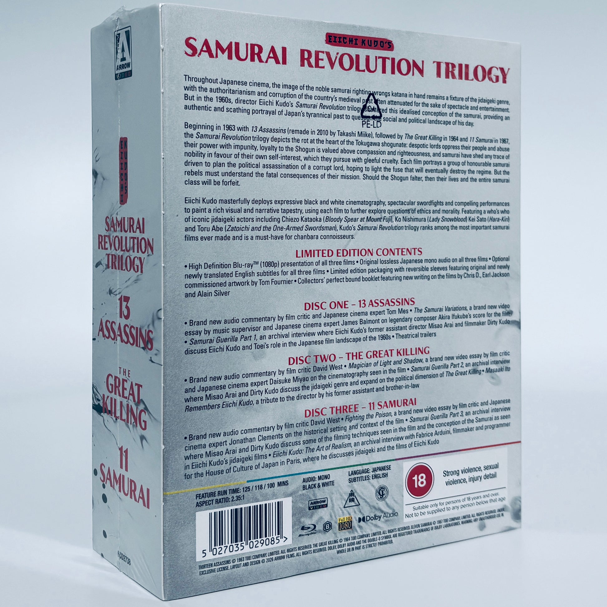Introducing Arrow's Blu-ray (Region B) for Eiichi Kudo's Samurai Revolution Trilogy, which includes 1963's 13 Assassins, 1964's The Great Killing and 1967's 11 Samurai.