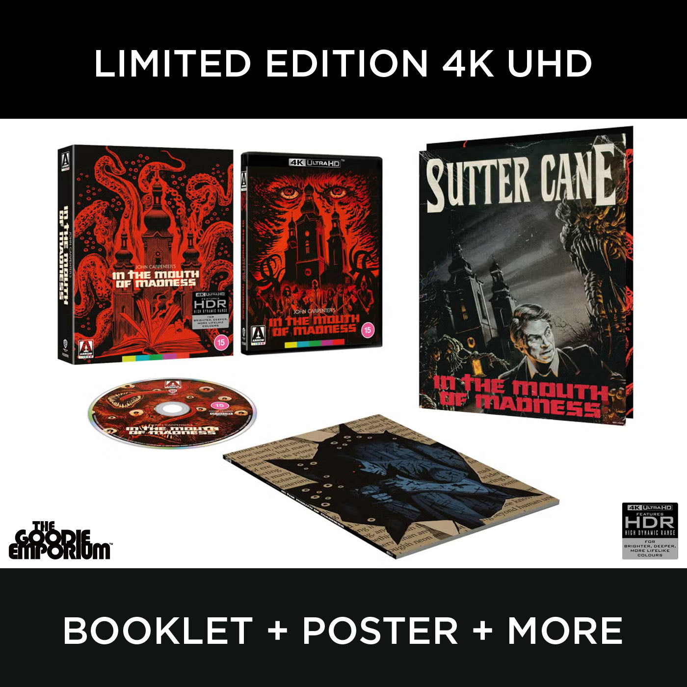 Introducing Arrow Films' 4K Ultra HD Limited Edition release for 1994's In the Mouth of Madness. He chilled our blood with The Thing. Brought us face to face with the devil himself in Prince of Darkness. Now master of horror John Carpenter drives us out of our minds with In the Mouth of Madness, the final entry in his "Apocalypse Trilogy."