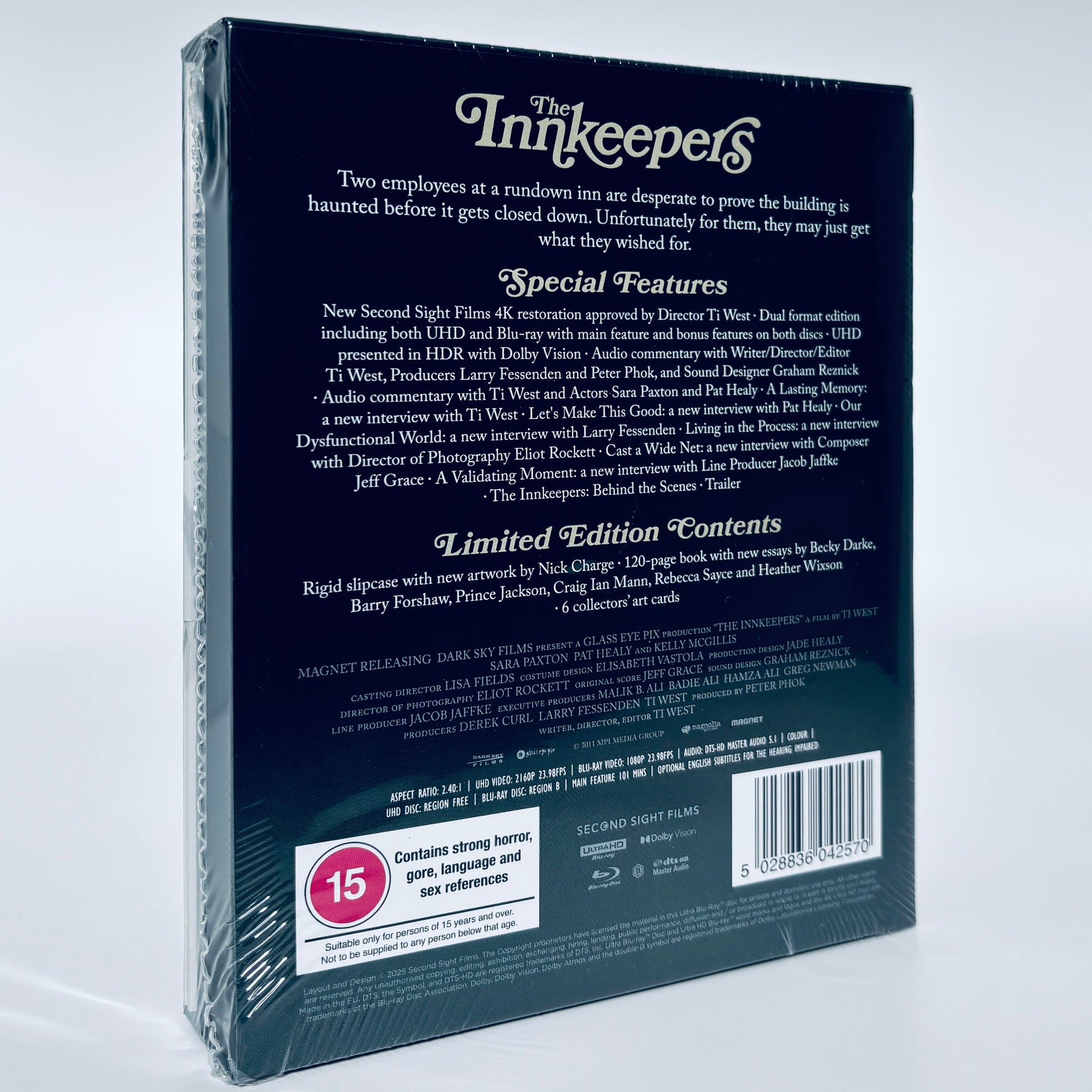 Introducing Second Sight's Limited Edition 4K Ultra HD + Blu-ray (Region B) collection for Ti West's 2011 thriller, The Innkeeper. Two employees at a rundown inn are desperate to prove the building is haunted before it gets closed down. Unfortunately for them, they may just get what they wished for.