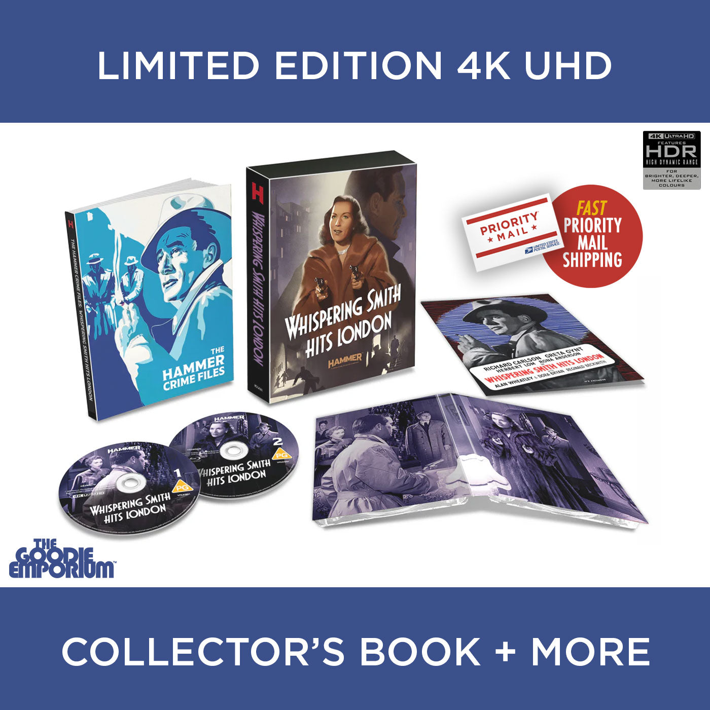 - Whispering Smith vs. Scotland Yard and supporting material on two discs in a stylish digipak and rigid box: one UHD and one Blu-ray, with the content duplicated across both formats